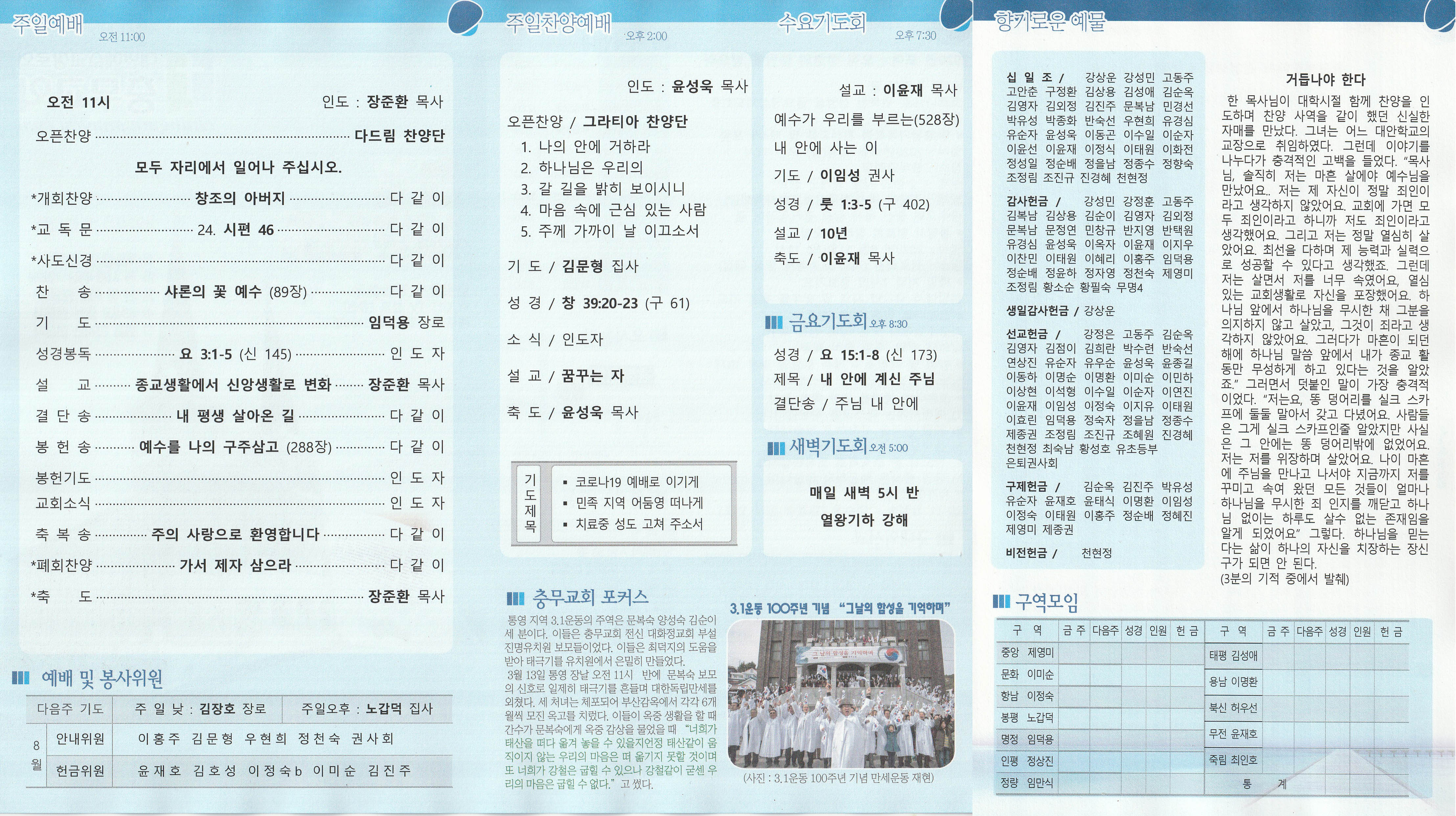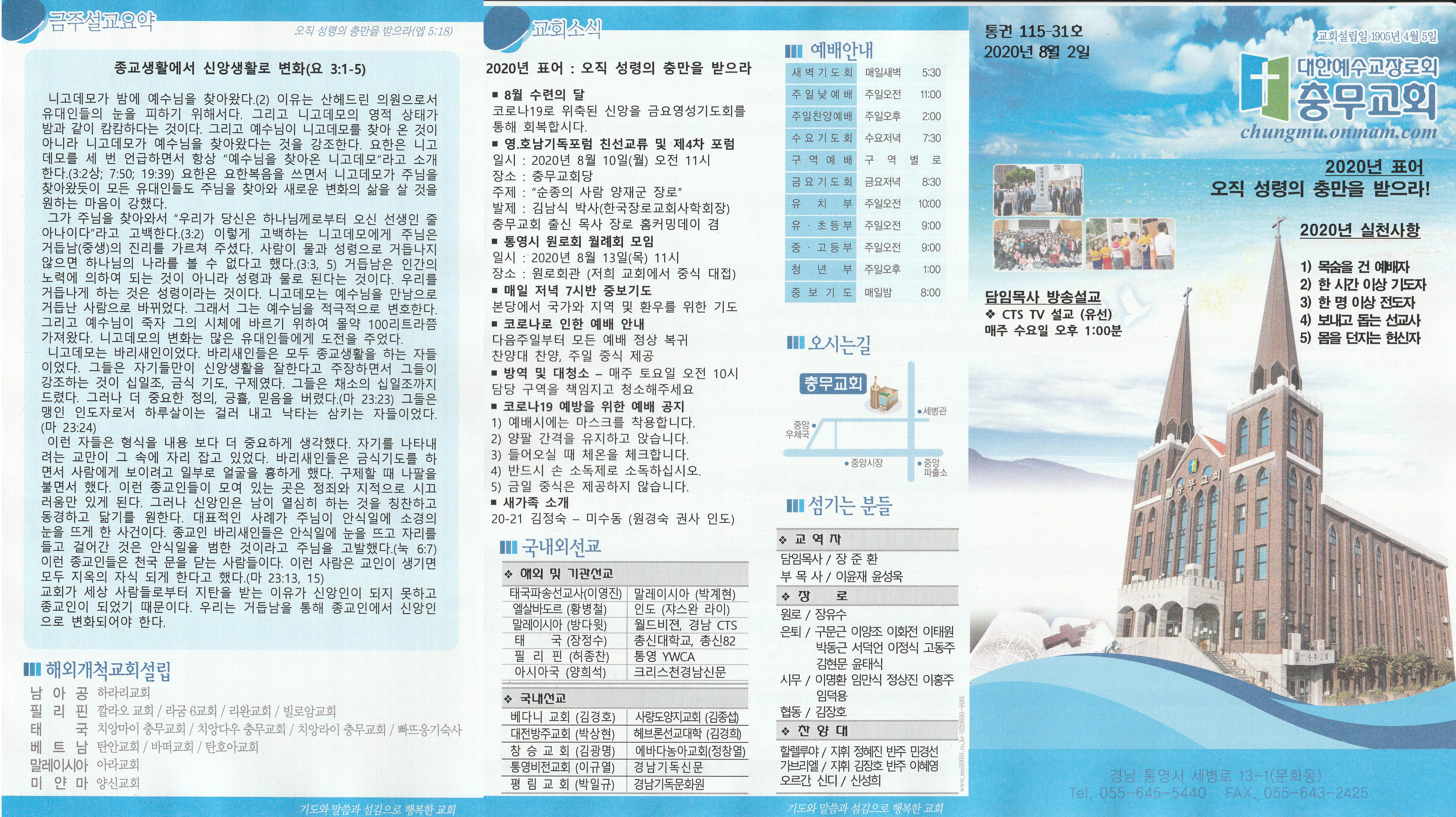 2020년 8월 2일 충무교회 주보