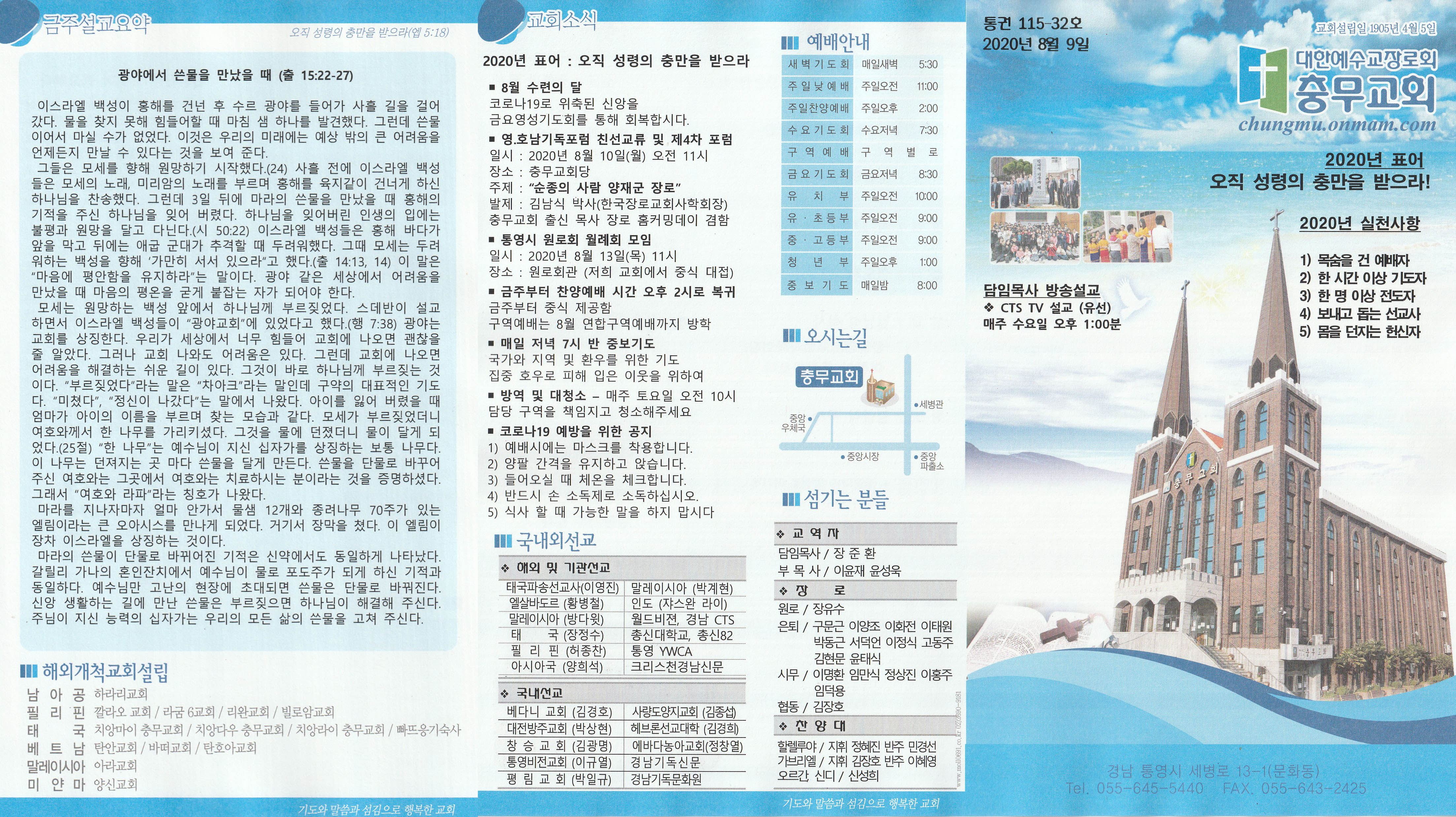 2020년 8월 9일 충무교회 주보
