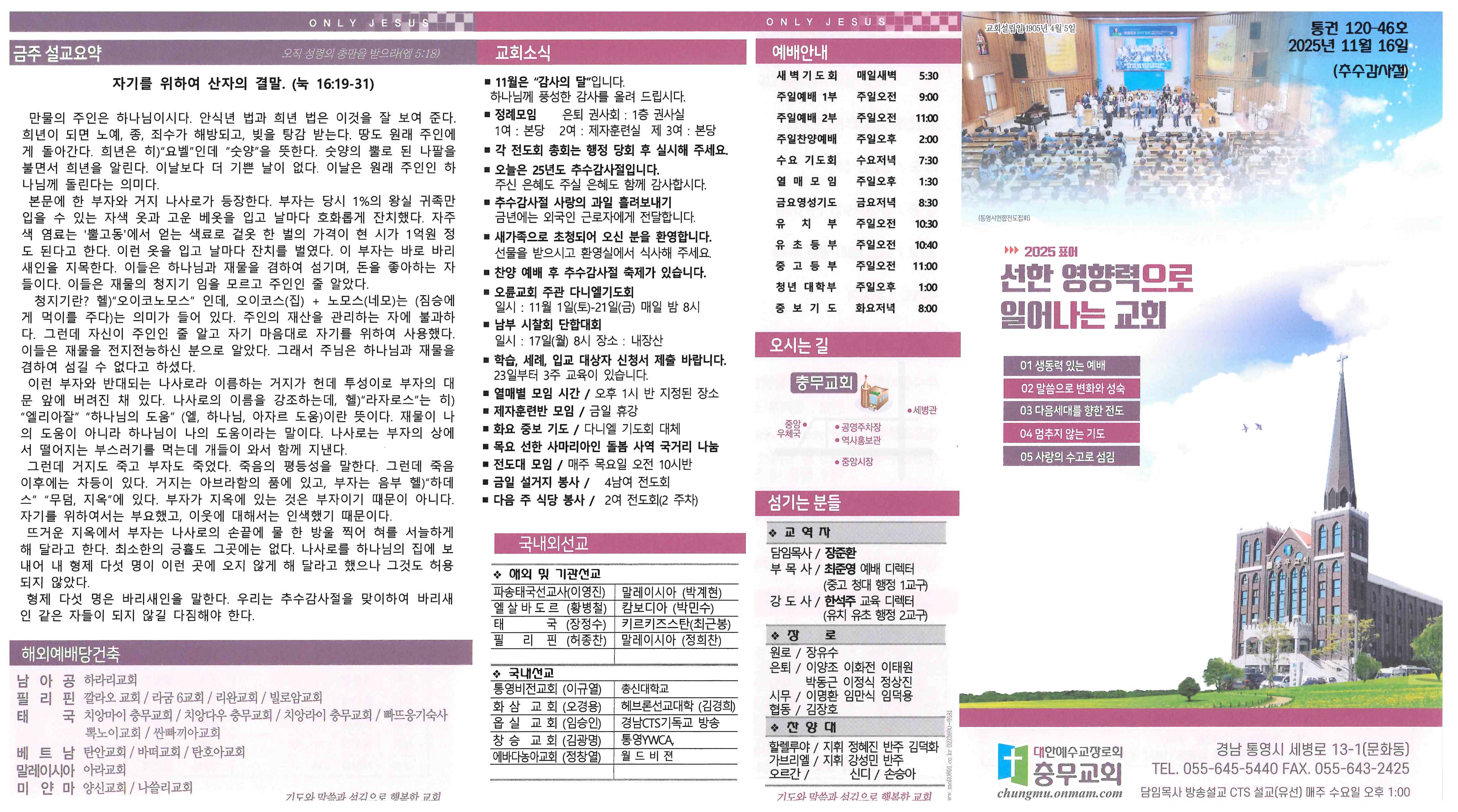 | 다음글 | 25.11. 9. 주보 | 한석주 | 2025.11.08 | 0 | 138 |