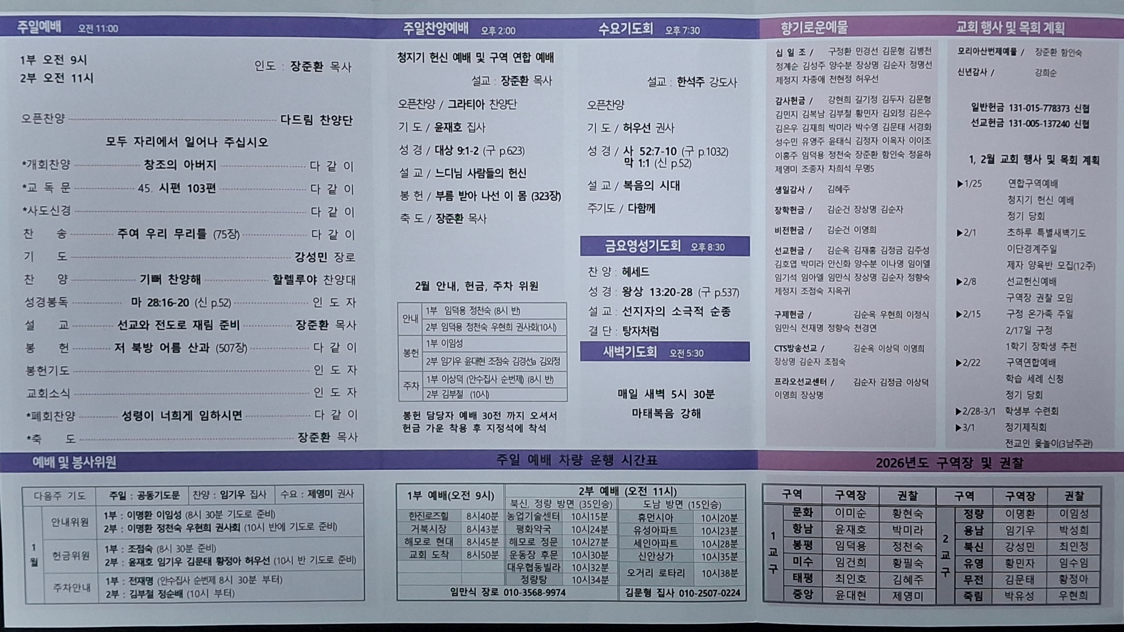 | 이전글 | 2026, 2, 1 주보 | 김요셉 | 2026.01.31 | 0 | 191 |
